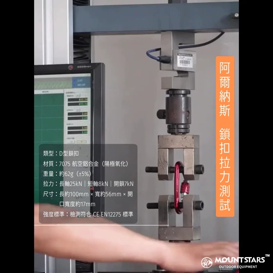 阿爾納斯A款D型主鎖採用高強度7075航空鋁合金,承重力高達25kN,符合CE EN12275 強度標準,搭配防滑螺母與防勾設計,單手即可快速操作,安全穩固、好攜輕量,是戶外探險與工作場景的理想選擇!