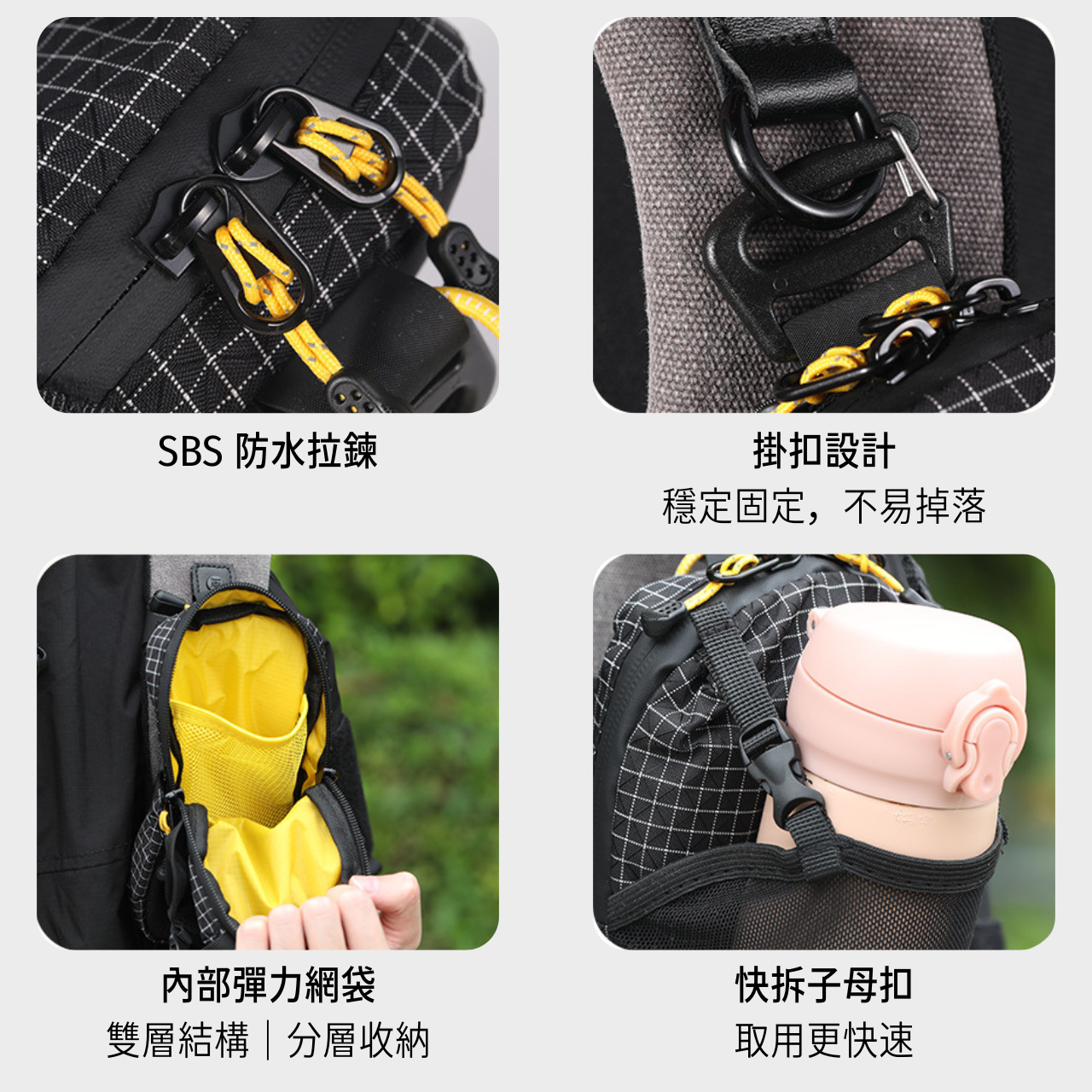 ✅ 可外掛水瓶、快速取用