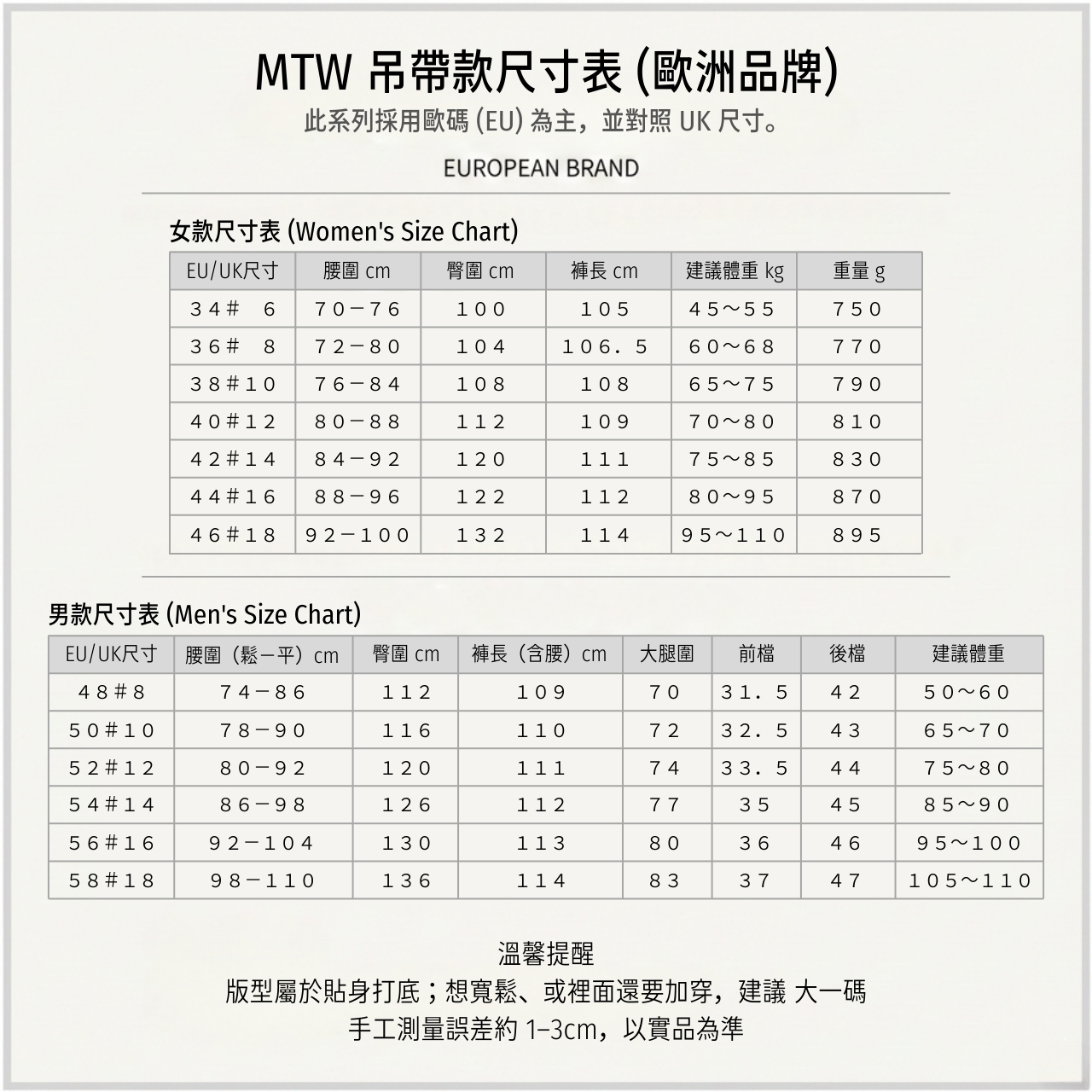 MTW吊帶款尺寸表(歐洲品牌) (#UK尺寸)